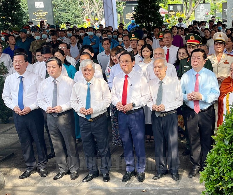 Đồng chí Nguyễn Văn Nên cùng các đại biểu dâng hương tưởng niệm đồng chí Huỳnh Tấn Phát.(Thanhuytphcm.vn) - Nhân kỷ niệm 110 năm Ngày sinh đồng chí Huỳnh Tấn Phát (15/2/1913 - 15/2/2023), chiều 14/2, Thành ủy, HĐND, UBND, Ủy ban MTTQ Việt Nam TPHCM tổ chức lễ dâng hương, dâng hoa tưởng niệm đồng chí tại Khu mộ đồng chí Huỳnh Tấn Phát tại Nghĩa trang TPHCM.
