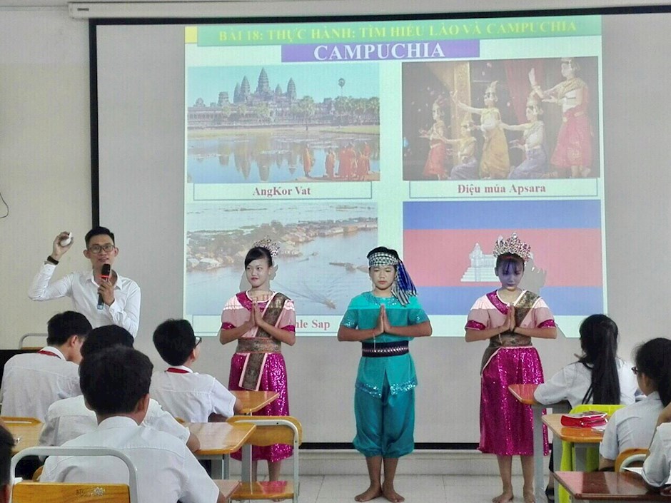 Thầy chia sẻ: “Bất kể môn học nào, càng thực tế sẽ càng thu hút, tôi luôn tạo điều kiện để học sinh làm việc nhóm, tự khám phá, tìm hiểu thông tin quanh nội dung bài học, thực hiện powerpoint thuyết trình về con người, bản sắc văn hóa ở từng vùng miền cụ thể. Tôi chú trọng việc tạo cho học sinh môi trường học tập thoải mái bằng cách lắng nghe các em nhiều hơn, có sự tương tác giữa thầy và trò sẽ giúp học sinh tiếp thu bài học nhanh và nhớ lâu hơn”.