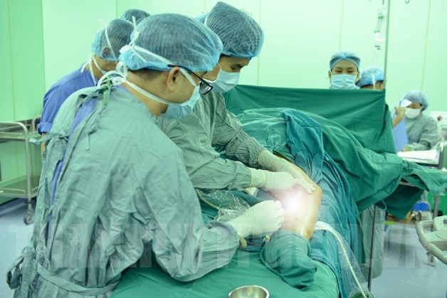 Điều trị suy giãn tĩnh mạch nông chi dưới bằng keo sinh học tại Bệnh viện Đại học Y dược TPHCM. (Ảnh: Nam Phương)