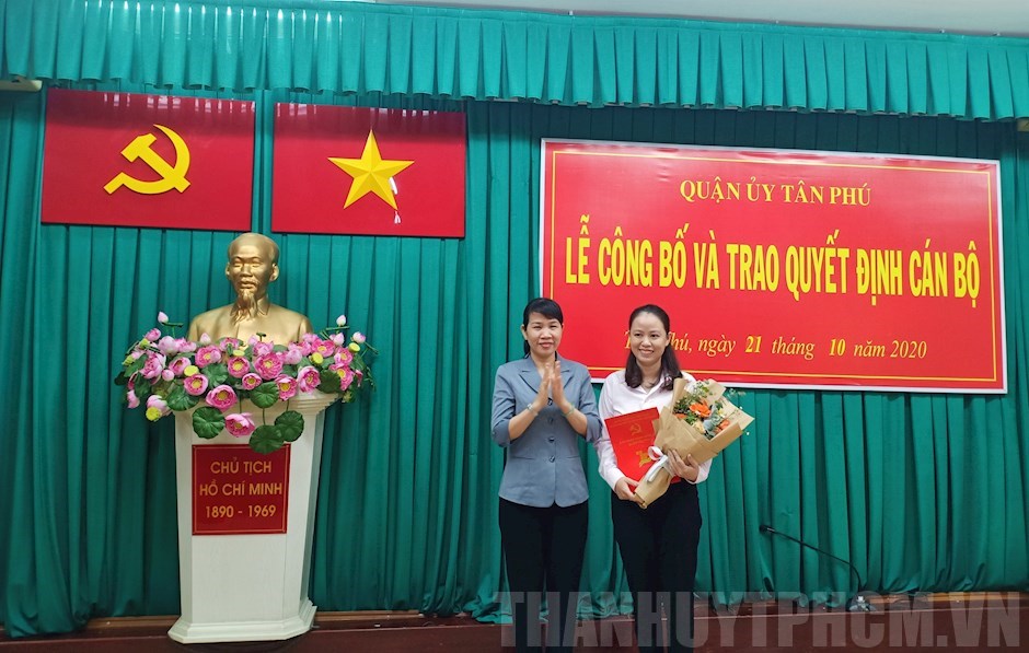 Tại buổi lễ, Bí thư Quận ủy quận Tân Phú Lê Thị Kim Hồng đã trao Quyết định bổ nhiệm đồng chí Lê Thị Minh Trang, Chuyên viên Ban Tổ chức Quận ủy giữ nhiệm vụ Phó Trưởng Ban Tổ chức Quận ủy quận Tân Phú.