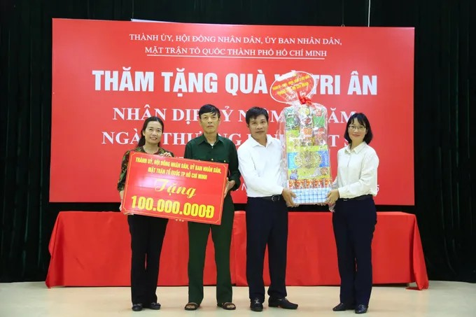 Đoàn công tác đã gửi lời thăm hỏi, động viên và trao tặng các phần quà đến tập thể cán bộ trung tâm và các thương, bệnh binh đang điều trị, phục hồi sức khỏe. Các phần quà mang giá trị thiết thực và thể hiện tình cảm, trách nhiệm của Đảng bộ, chính quyền và nhân dân TPHCM đối với những người có công với đất nước.