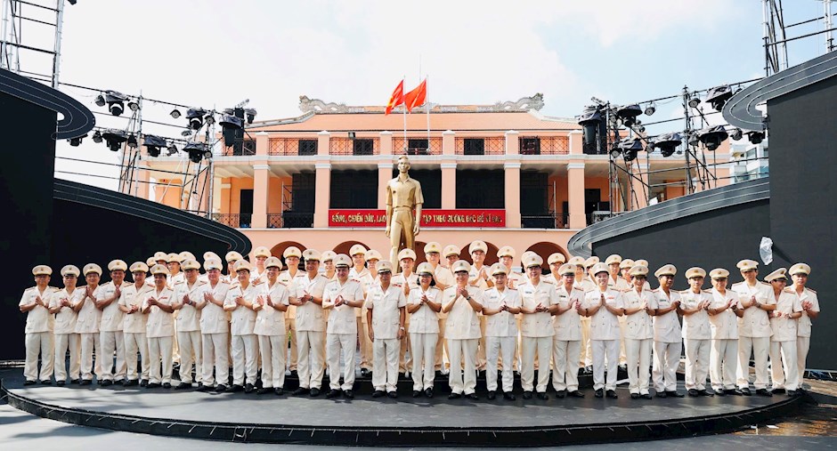 Đoàn đại biểu dâng hoa tưởng nhớ Chủ tịch Hồ Chí Minh tại Công viên Tượng đài Chủ tịch Hồ Chí Minh trên Phố đi bộ Nguyễn Huệ.Trong không khí thiêng liêng, hào hùng của những ngày Tháng Tám lịch sử, trước Anh linh Chủ tịch Hồ Chí Minh, Đoàn đại biểu đã tưởng nhớ và thành kính dâng lên lẵng hoa tươi thắm, dành phút mặc niệm, bày tỏ lòng biết ơn vô hạn đối với công lao trời biển của Người. Lực lượng CAND nói chung và Công an TPHCM nói riêng nguyện trung thành tuyệt đối với Tổ quốc, Đảng, Nhà nước và Nhân dân; không ngừng học tập, làm theo tư tưởng, đạo đức, phong cách Hồ Chí Minh; thực hiện nghiêm Sáu điều Bác Hồ dạy, đoàn kết thống nhất, nêu cao tinh thần “phụng sự Tổ quốc, phục vụ nhân dân”, gương mẫu, tiên phong, thực hiện có hiệu quả các phong trào thi đua yêu nước bằng những hành động sáng tạo, thiết thực; giữ vững kỷ luật, kỷ cương; vượt qua mọi khó khăn, thách thức, đoàn kết, thống nhất một lòng, tiếp tục phát huy những thành tựu, kinh nghiệm và truyền thống anh hùng vẻ vang, giữ vững an ninh quốc gia, bảo đảm trật tự, an toàn xã hội, hoàn thành xuất sắc mọi nhiệm vụ mà Đảng, Nhà nước và Nhân dân giao phó.