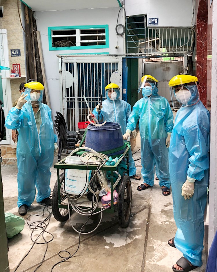 Thực hiện phun thuốc khử khuẩn tại khu phố 2, Phường 14.Mặc dù thời tiết nắng nóng, nhưng các thành viên Đội đều không nề hà vất vả, làm việc với tinh thần tình nguyện và cảm thấy vui sau khi phun phủ được hết các ngõ ngách trong địa bàn dân cư. Đội chỉ mới thành lập được 7 ngày nhưng đã phun thuốc 4 lần toàn khu phố 2, 1 lần toàn khu phố 1 và một phần địa bàn giáp ranh khu phố 3. Dự kiến sẽ tiếp tục phun thuốc cho đến khi dịch bệnh trên địa bàn được kiểm soát.