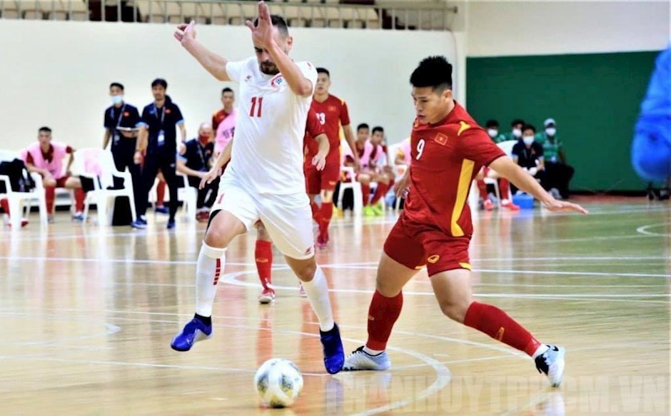 Đội tuyển futsal Việt Nam (áo đỏ) bất phân thắng bại cùng đội tuyển Lebanon(Thanhuytphcm.vn) - Trận lượt đi play-off tranh vé dự Vòng chung kết futsal World Cup 2021 diễn ra vào đêm 23/5, đội tuyển Việt Nam đã bất phân thắng bại cùng đội tuyển Lebanon với tỷ số 0-0. Trận hòa này được xem là lợi thế cho các cầu thủ Việt Nam trước trận lượt về vào tối 25/5.