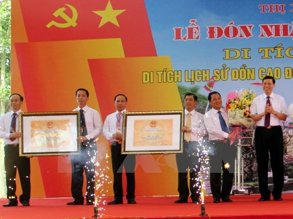 Quang cảnh Lễ trao bằng xếp hạng di tích quốc gia cho di tích Đồn Cao Đông Triều và đền An Biên. (Ảnh: TTXVN)Nhân dịp kỷ niệm 72 năm ngày thành lập Đệ tứ Chiến khu-Chiến