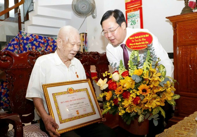 Phó Bí thư Thường trực Thành ủy TPHCM Lê Quốc Phong trao Huy hiệu 80 năm tuổi Đảng đến đồng chí Nguyễn Kiến Văn. (Ảnh: SGGP)Sáng 26/1, Đảng ủy phường Thới An, TPHCM tổ chức lễ trao tặng Huy hiệu 80 năm tuổi Đảng đợt ngày 3/2, đến đồng chí Nguyễn Kiến Văn (sinh năm 1929), đảng viên Chi bộ khu phố 17, phường Thới An, tại nhà riêng.