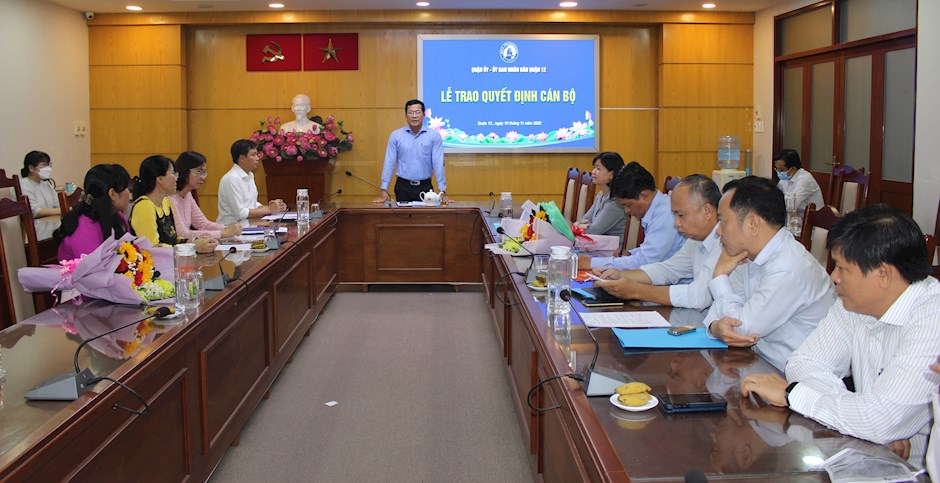 Đồng chí Trần Hoàng Danh, Bí thư Quận ủy phát biểu giao nhiệm vụ tại buổi lễ(Thanhuytphcm.vn) - Chiều 10/11, Quận ủy - UBND Quận 12 tổ chức lễ công bố và trao quyết định cán bộ. Đến dự có đồng chí Trần Hoàng Danh, Bí thư Quận ủy; Nguyễn Văn Đức, Phó Bí thư Quận ủy, Chủ tịch UBND quận.