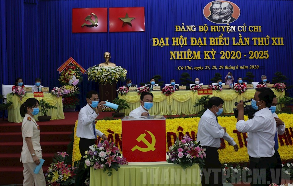 Các đại biểu bỏ phiếu bầu Ban Chấp hành Đảng bộ huyện Củ Chi lần thứ XII, nhiệm kỳ 2020 - 2025. Ảnh: Thúy An(Thanhuytphcm.vn) - Sáng 29/8, sau 3 ngày diễn ra, Đại hội Đại biểu Đảng bộ huyện Củ Chi lần thứ XII, nhiệm kỳ 2020 - 2025 đã bế mạc. Tham dự phiên bế mạc có Ủy viên Ban Thường vụ Thành ủy, Trưởng Ban Tổ chức Thành ủy TP Nguyễn Hồ Hải; Ủy viên Ban Thường vụ Thành ủy, Trưởng Ban Dân vận Thành ủy TP Nguyễn Hữu Hiệp.