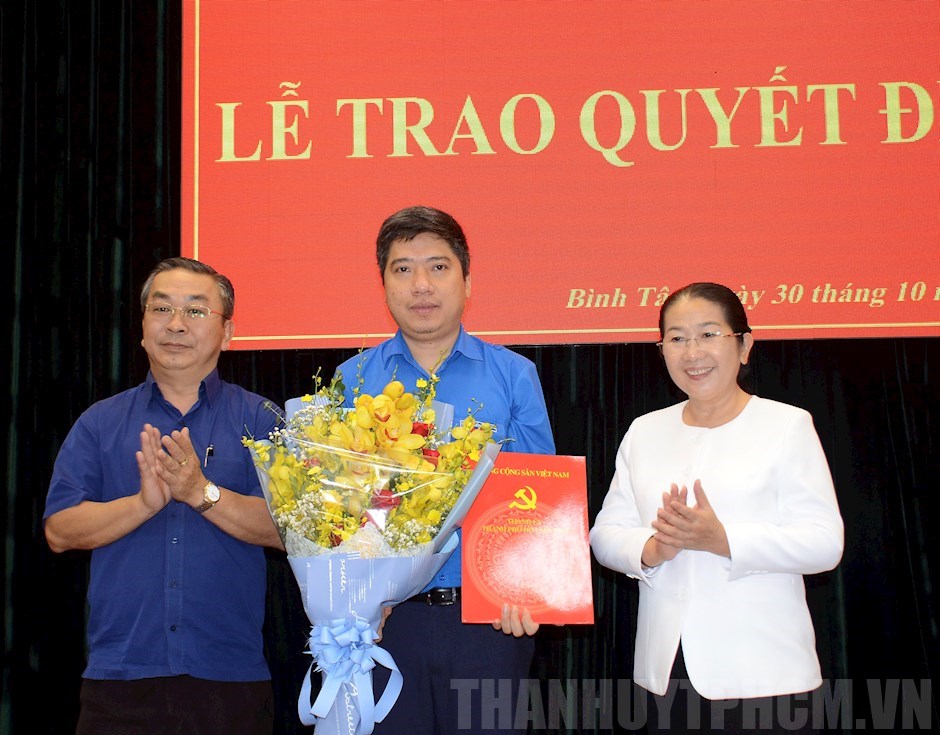 Phó Bí thư Thành ủy TP Võ Thị Dung và Bí thư Quận ủy Quận Bình Tân Võ Ngọc Quốc Thuận trao quyết định và tặng hoa chúc mừng đồng chí Nguyễn Việt Quế Sơn(Thanhuytphcm.vn) – Trưa 30/10, Thành ủy TPHCM tổ chức lễ trao quyết định điều động, bổ nhiệm cán bộ. Đến dự có Phó Bí thư Thành ủy TPHCM Võ Thị Dung; Thành ủy viên, Phó Trưởng Ban Thường trực Ban Tổ chức Thành ủy TPHCM Huỳnh Cách Mạng.