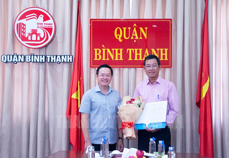 Chủ tịch UBND quận Đinh Khắc Huy (trái) trao quyết định điều động, bổ nhiệm cho đồng chí Trần Đăng Khoa.(Thanhuytphcm.vn) - Sáng 09/5, UBND quận Bình Thạnh tổ chức lễ trao quyết định điều động, bổ nhiệm cán bộ lãnh đạo quản lý. Đồng chí Đinh Khắc Huy, Phó Bí thư Quận ủy, Chủ tịch UBND quận chủ trì buổi lễ. Tham dự có các đồng chí: Lâm Thị Thu Lan, Phó Trưởng Ban Tổ chức Quận ủy; Phan Quang Khánh, Trưởng Phòng Nội vụ quận Bình Thạnh;…