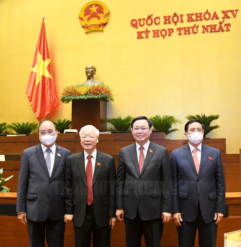 Các đồng chí lãnh đạo Đảng, Nhà nước, Quốc hội tại phiên khai mạc 20/7.(Thanhuytphcm.vn) – Cuối phiên làm việc sáng 20/7, Kỳ họp thứ nhất Quốc hội khóa XV bắt đầu tiến hành công tác nhân sự.