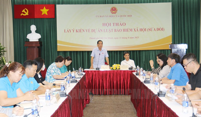 Đồng chí Nguyễn Duy Cường, Phó Vụ trưởng, Vụ Bảo hiểm xã hội, Bộ Lao động, Thương binh và Xã hội phát biểu tại hội thảo.(Thanhuytphcm.vn) - Ngày 11/8, tại TPHCM, Ủy ban Xã hội của Quốc hội tổ chức Hội thảo lấy ý kiến về Dự án Luật Bảo hiểm xã hội (sửa đổi) nhằm lắng nghe ý kiến từ tổ chức đại diện người lao động, Công đoàn cơ sở và công nhân, người lao động đang làm việc tại các tỉnh thành phố phía Nam, qua đó tổng hợp và trình lên Ủy ban Thường vụ Quốc hội tại cuộc họp sẽ diễn ra trong tuần tới.