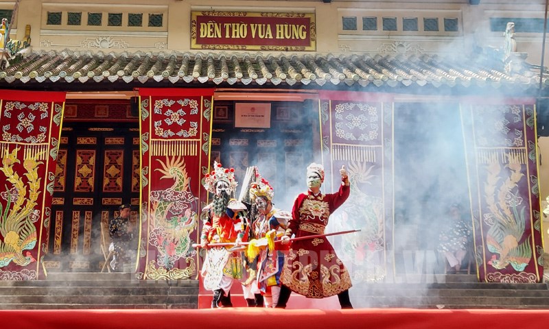 Trích đoạn “Ôn Đình chém Tá” kinh diển của nghệ thuật Hát bội.(Thanhuytphcm.vn) - Ngày 19/7, tại khu vực Đền thờ Vua Hùng (khuôn viên Bảo tàng Lịch sử TPHCM, Quận 1), Bảo tàng Lịch sử TPHCM phối hợp Nhà hát Nghệ thuật Hát bội TPHCM chính thức giới thiệu chương trình biểu diễn Nghệ thuật Hát bội đến khách tham quan và công chúng TP.