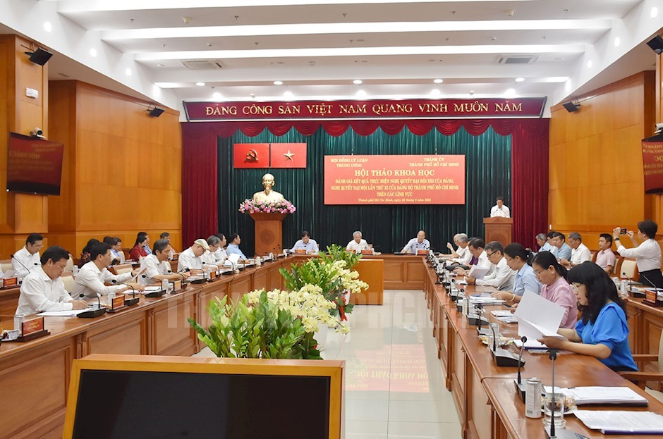 Hội thảo khoa học "Đánh giá kết quả thực hiện Nghị quyết Đại hội XIII của Đảng, Nghị quyết Đại hội lần thứ XI của Đảng bộ TPHCM trên các lĩnh vực" được tổ chức nhằm đánh giá chính xác, khách quan quá trình thực hiện Nghị quyết Đại hội XIII của Đảng và Nghị quyết Đại hội lần thứ XI của Đảng bộ TPHCM trên các lĩnh vực; chỉ rõ những thành tựu, hạn chế, khuyết điểm, nguyên nhân và kiến nghị, đề xuất...