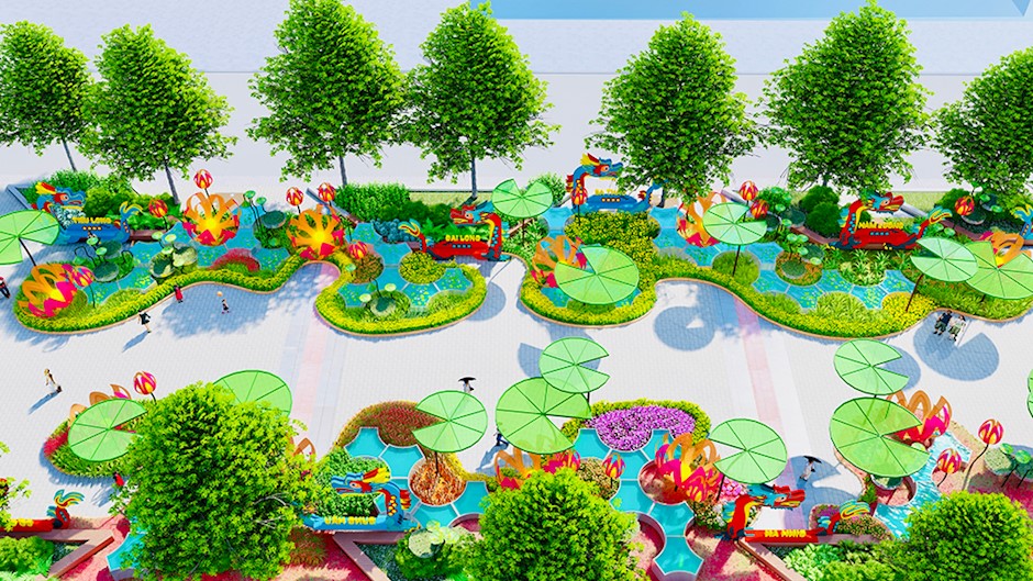 Toàn cảnh phối cảnh đường hoa Nguyễn Huệ năm 2024.(Thanhuytphcm.vn) - Sáng 28/12, Tổng Công ty Du lịch Sài Gòn (Saigontourist Group) cho biết, với chủ đề “Xuân yêu thương, Tết sum vầy”, Đường hoa Nguyễn Huệ Tết Giáp Thìn 2024 sẽ chinh phục khách thưởng ngoạn với đại cảnh ấn tượng và tiểu cảnh đa dạng.