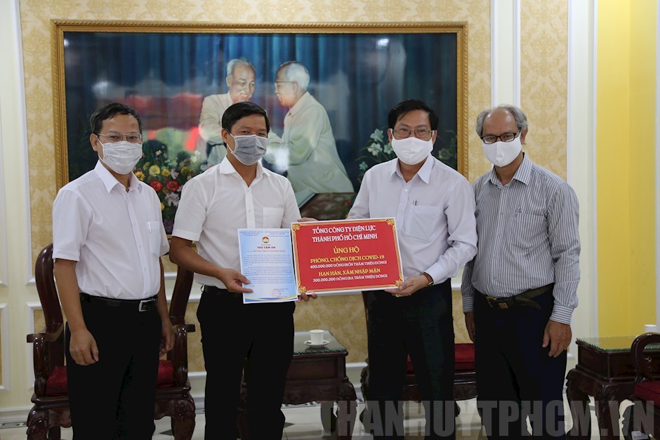 Ông Lê Văn Minh, Chủ tịch Công đoàn EVNHCMC trao ủng hộ 700 triệu đồng cho đại diện Ủy ban Mặt trận Tổ quốc Việt Nam TPHCM(Thanhuytphcm.vn) -Tiếp tục hưởng ứng lời kêu gọi của Ủy ban Mặt trận Tổ quốc Việt Nam TPHCM ủng hộ công tác phòng chống dịch Covid – 19 và hỗ trợ đồng bào bị thiệt hại do hạn hán, xâm nhập mặn, sáng 7/4, tại trụ sở Ủy ban Mặt trận Tổ quốc Việt Nam TPHCM, Tổng công ty Điện lực TPHCM (EVN-HCMC) đã ủng hộ số tiền 700 triệu đồng, trong đó ủng hộ phòng, chống dịch COVID-19 số tiền 400 triệu đồng; ủng hộ đồng bào bị hạn hán, xâm nhập mặn số tiền 300 triệu đồng.