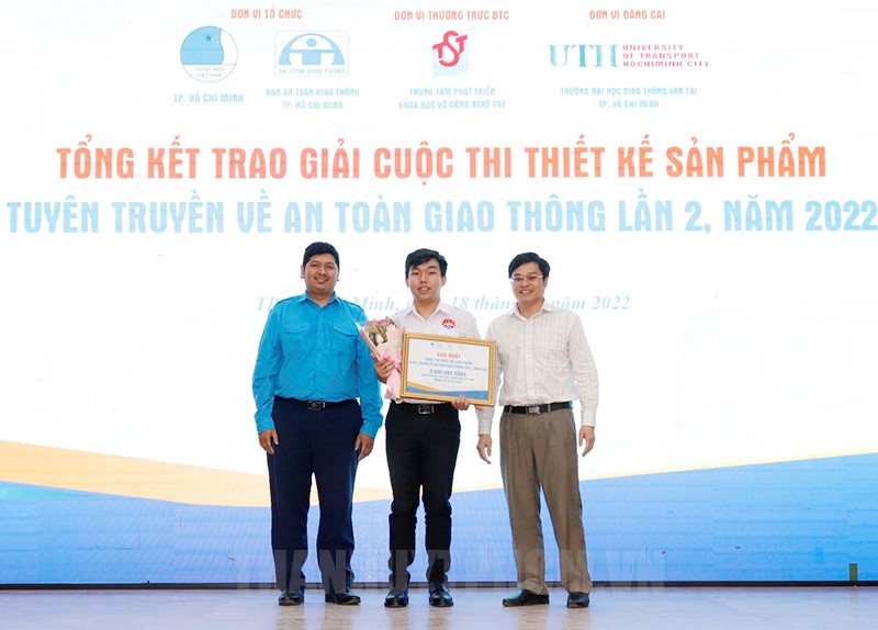 Ban Tổ chức trao giải Nhất cuộc thi tuyên truyền về An toàn giao thông.(Thanhuytphcm.vn) - Ngày 18/12, Cuộc thi “Giao thông xanh” lần 5 – năm 2022 và Cuộc thi “Thiết kế sản phẩm tuyên truyền về An toàn giao thông” lần 2 năm 2022 do Trung tâm Phát triển Khoa học và Công nghệ Trẻ (Thành Đoàn TPHCM) phối hợp cùng Ban An toàn giao thông tổ chức đã diễn ra vòng chung kết.