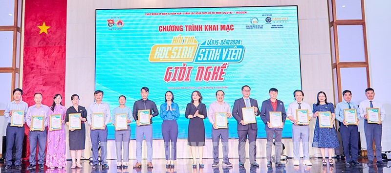 Ban tổ chức trao thư cảm ơn các đơn vị tham gia hội thi “Học sinh, sinh viên giỏi nghề” lần thứ 15 - năm 2024(Thanhuytphcm.vn) - Sáng 16/3, tại Trường Cao đẳng Bách Khoa Bách Việt, Thành Đoàn TPHCM phối hợp cùng Sở Lao động Thương binh và Xã hội TPHCM tổ chức Lễ khai mạc Hội thi “Học sinh, sinh viên giỏi nghề” lần thứ 15 - năm 2024.