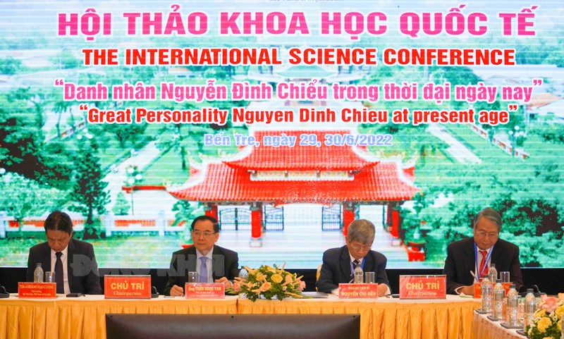 Hội thảo Khoa học quốc tế với chủ đề “Danh nhân Nguyễn Đình Chiểu trong thời đại ngày nay”. (Ảnh: Baodongkhoi.vn)(Thanhuytphcm.vn) – Trong bài phát biểu chào mừng hội thảo khoa học về danh nhân Nguyễn Đình Chiểu ngày 29/6/2022 tại Bến Tre, đồng chí Lê Đức Thọ, Bí thư Tỉnh ủy Bến Tre, cho biết, danh nhân Nguyễn Đình Chiểu (1822-1888) được UNESCO đưa vào danh sách tôn vinh Nhân vật văn hóa có tầm ảnh hưởng trên thế giới. Ông là một nhà văn hóa lớn, nhà thơ yêu nước tiêu biểu của dân tộc Việt Nam, nhà giáo của nhiều thế hệ, thầy thuốc tinh thông y lý, y thuật và nổi tiếng về y đức. Tài năng và địa vị của ông trên văn đàn, y thuật và nền giáo dục nước nhà đã được ghi nhận, tôn vinh từ rất sớm, ngay lúc ông còn sống... Nhận định trên đã khái quát giá trị của Nguyễn Đình Chiểu trong dòng chảy của lịch sử dân tộc, thấm đẫm cả ở lĩnh vực văn hóa – xã hội lẫn học thuật.