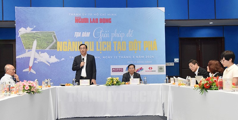 Phó Giám đốc Sở Du lịch TPHCM Lê Trương Hiền Hòa phát biểu tại tọa đàm.Về kinh nghiệm thu hút du khách của ngành Du lịch TPHCM, đồng chí Lê Trương Hiền Hòa chia sẻ, hai năm nay, TPHCM đẩy mạnh chương trình mỗi quận/huyện 1 sản phẩm đặc trưng; Công tác quảng bá của các doanh nghiệp du lịch cũng được quan tâm. Bên cạnh đó là đẩy mạnh công tác truyền thông; Triển khai du lịch liên kết vùng. Ngoài ra, TPHCM cũng hướng đến du lịch xanh, xây dựng liên minh du lịch để kích cầu, thúc đẩy du lịch trong tổng thể. Hiện nay, TPHCM cũng đang tập trung chuyển đổi số du lịch…