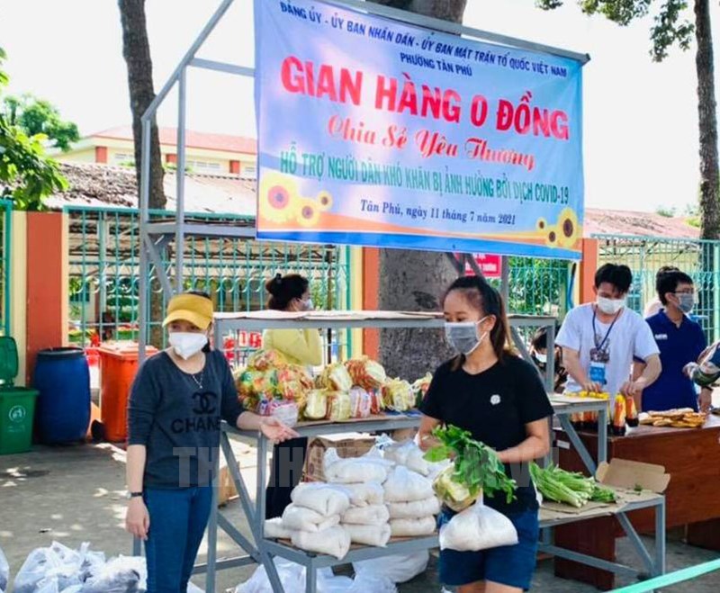 Với thông điệp “Trao yêu thương cùng chia sẻ”, phường Tân Phú đã vận động các cá nhân hảo tâm cùng nhau đóng góp, hỗ trợ cho những hoàn cảnh khó khăn trên địa bàn thông qua “Gian hàng 0 đồng”. Chương trình được hoạt động từ 8 giờ đến 11 giờ hàng ngày, tại 2 điểm: Trường Tiểu học Tân Phú và Trường THCS Tân Phú; mỗi ngày gian hàng sẽ phục vụ miễn phí cho 620 hộ dân.