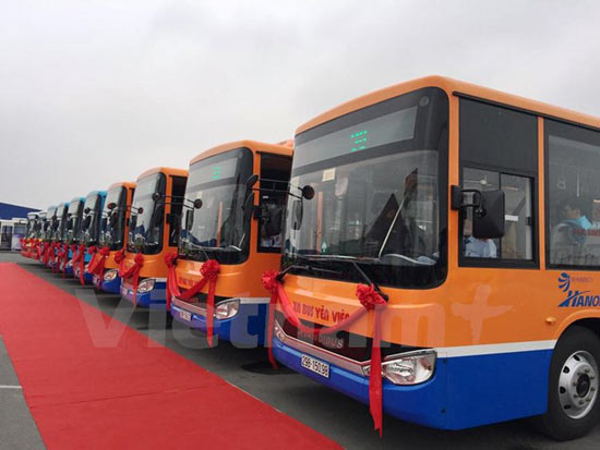 Hai tuyến buýt mới sẽ mở rộng vùng phục vụ khu vực các huyện ngoại thành của Hà Nội. (Ảnh: TTXVN) |