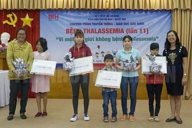 (Thanhuytphcm.vn) - Tin từ Bệnh viện Truyền máu - Huyết học TPHCM ngày 17/5 cho biết, tại Chương trình Truyền thông, giáo dục sức khỏe “Vì một thế giới không bệnh Thalassemia”, bệnh viện đã hỗ trợ cho 4 người bệnh Thalassemia có hoàn cảnh khó khăn với tổng kinh phí 8 triệu đồng (ảnh).