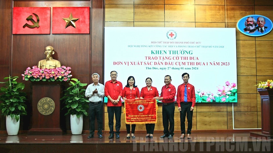 Đồng chí Nguyễn Hoàng Ân, Phó Chủ tịch Hội CTĐ TPHCM trao Cờ thi đua cho Hội CTĐ TP Thủ Đức(Thanhuytphcm.vn) - Sáng 27/01, Hội Chữ thập đỏ (CTĐ) TP Thủ Đức tổ chức Hội nghị tổng kết công tác Hội năm 2023 và đề ra phương hướng hoạt động năm 2024. Tham dự hội nghị có các đồng chí: Nguyễn Hoàng Ân, Phó Chủ tịch Hội CTĐ TPHCM; Cao Văn Minh, Ủy viên Ban Thường vụ Thành ủy, Trưởng Ban Dân vận Thành ủy Thủ Đức; Võ Văn Việt, Phó Trưởng Ban Tuyên giáo Thành ủy Thủ Đức; Đặng Trần Nguyên Thảo, Ủy viên Ban Thường vụ Hội CTĐ TPHCM, Chủ tịch Hội CTĐ TP Thủ Đức; Đinh Thị Thảo, Ủy viên Thường trực Ủy ban MTTQ Việt Nam TP Thủ Đức…