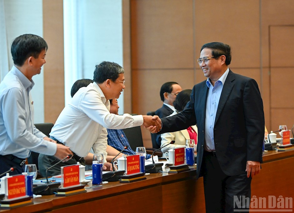 Bí thư Đảng ủy Chính phủ, Thủ tướng Phạm Minh Chính với các đại biểu dự Hội nghị (Ảnh Nhân Dân)Chiều 15/9, tại Nhà Quốc hội, Bí thư Đảng ủy Chính phủ, Thủ tướng Chính phủ Phạm Minh Chính và Bí thư Đảng ủy Quốc hội, Chủ tịch Quốc hội Trần Thanh Mẫn chủ trì Hội nghị Ban Thường vụ Đảng ủy Quốc hội và Ban Thường vụ Đảng ủy Chính phủ về chuẩn bị Kỳ họp thứ 10, Quốc hội khóa XV.