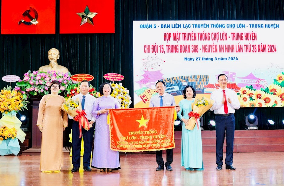 Lãnh đạo Quận 5 trao cờ truyền thống cho Huyện ủy Bến Lức, tỉnh Long An - đơn vị tổ chức họp mặt lần thứ 39 vào năm 2025(Thanhuytphcm.vn) - Ngày 27/3, UBND Quận 5 phối hợp Ban Liên lạc Truyền thống Chợ Lớn – Trung Huyện tổ chức họp mặt truyền thống Chợ Lớn - Trung Huyện Chi đội 15 Trung đoàn 308 - Nguyễn An Ninh, lần thứ 38 - năm 2024. Đến dự Trưởng ban liên lạc Truyền thống Chợ Lớn – Trung Huyện Nguyễn Đô Lương; Phó Chủ tịch Ủy ban MTTQ Việt Nam TPHCM Ngô Thanh Sơn; Bí thư Quận ủy Quận 5 Huỳnh Ngọc Nữ Phương Hồng.