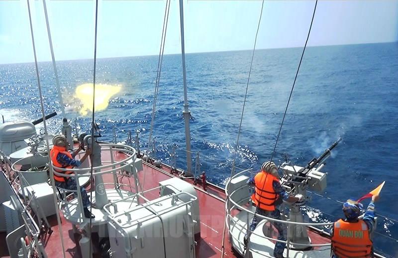 Tàu 272 thực hành tiêu diệt mục tiêu trên biển(Thanhuytphcm.vn) - “Báo động chiến đấu cấp 1, toàn tàu báo động chiến đấu đối không.” - Đó là khẩu lệnh của Trung tá Lê Văn Quân, Thuyền trưởng Tàu 383, Lữ đoàn 167, Vùng 2 Hải quân. Ngay sau khẩu lệnh tập bài các vị trí chiến đấu trên tàu nhanh chóng triển khai tập bài theo đúng tình huống đã xác định.