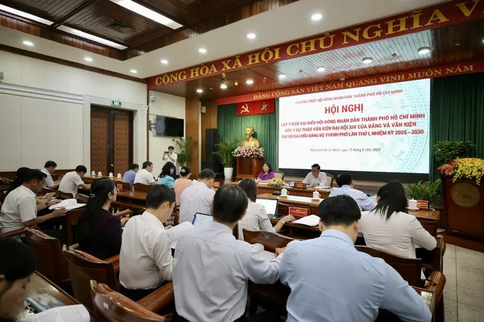 Đại biểu HĐND TPHCM tham dự hội nghị. (Ảnh: SGGP)Sáng 13/8, Thường trực HĐND TPHCM tổ chức Hội nghị lấy ý kiến đại biểu HĐND TPHCM góp ý dự thảo văn kiện Đại hội XIV của Đảng và văn kiện Đại hội đại biểu Đảng bộ TPHCM lần thứ I, nhiệm kỳ 2025-2030.