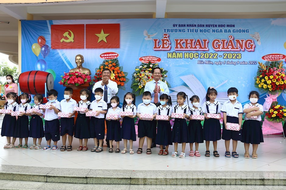 Được biết năm học 2022 - 2023, Trường Tiểu học Ngã Ba Giồng tiếp nhận 387 em học sinh vào lớp 1 năm học 2022 - 2023. Dịp này nhà trường trao nhiều phần quà cho các em học sinh có hoàn cảnh khó khăn.