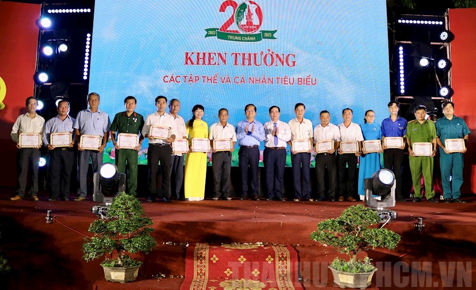 Dịp này, tập thể cán bộ, chiến sĩ và nhân dân xã Trung Chánh được UBND huyện Hóc Môn tặng giấy khen “Đã có đóng góp tích cực trong quá trình hình thành và phát triển giai đoạn 20 năm (2003 – 2023); UBND xã Trung Chánh tuyên dương 33 tập thể và 58 cá nhân có nhiều thành tích và đóng góp tích cực cho sự phát triển kinh tế - xã hội của xã trong 20 năm (từ năm 2003 cho đến nay); khen thưởng 1 đơn vị, 7 cá nhân đạt thành tích cao trong Hội thi “Tìm hiểu về lịch sử Đảng bộ xã Trung Chánh”.