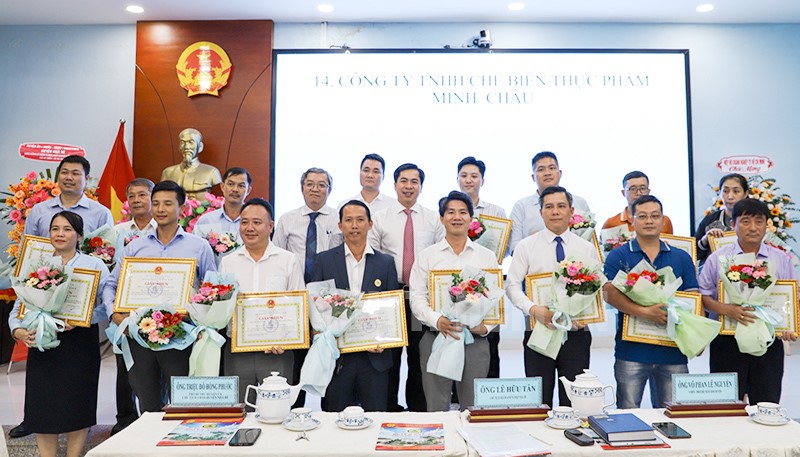 Đồng chí Triệu Đỗ Hồng Phước và đồng chí Võ Phan Lê Nguyễn tuyên dương các doanh nghiệp tiêu biểu năm 2023.(Thanhuytphcm.vn) - Chiều 11/10, UBND huyện Nhà Bè đã tổ chức họp mặt kỷ niệm 19 năm Ngày doanh nhân Việt Nam (13/10/2004 - 13/10/2023). Tham dự họp mặt có các đồng chí: Triệu Đỗ Hồng Phước, Phó Bí thư Huyện ủy, Chủ tịch UBND huyện; Võ Phan Lê Nguyễn, Ủy viên Ban Thường vụ Huyện ủy, Phó Chủ tịch UBND huyện; Trương Kim An, Ủy viên Ban Thường vụ Huyện ủy, Trưởng Ban Dân vận Huyện ủy, Chủ tịch Ủy ban MTTQ Việt Nam huyện Nhà Bè.