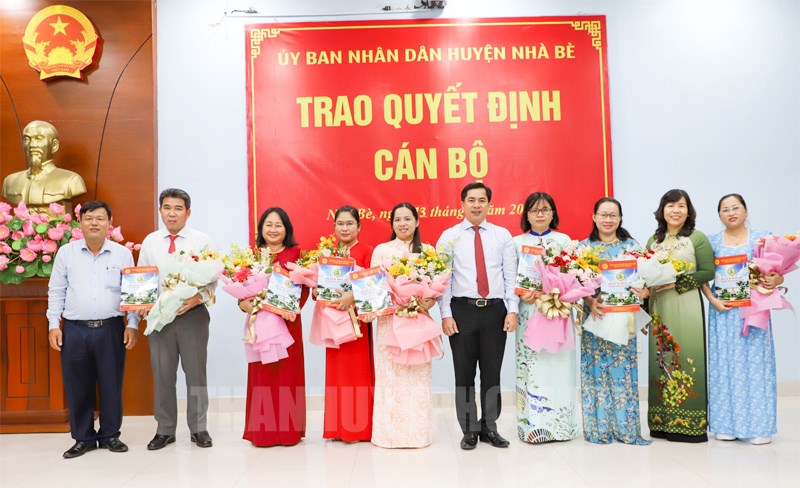 Theo các Quyết định, bổ nhiệm lại đồng chí Trần Văn Nhan, Hiệu trưởng trường Tiểu học Bùi Thanh Khiết, tiếp tục giữ chức vụ Hiệu trưởng trường Tiểu học Bùi Thanh Khiết, thời hạn bổ nhiệm là 5 năm, kể từ ngày 1/10/2022; bổ nhiệm lại đồng chí Nguyễn Thị Kim Oanh, Phó Hiệu trưởng trường Mầm non Mạ Non, tiếp tục giữ chức vụ Phó Hiệu trưởng trường Mầm non Mạ Non, thời hạn bổ nhiệm là 5 năm, kể từ ngày 1/10/2022; bổ nhiệm lại đồng chí Phạm Ngọc Tuyết Anh, Phó Hiệu trưởng trường Tiểu học Dương Văn Lịch, tiếp tục giữ chức vụ Phó Hiệu trưởng trường Tiểu học Dương Văn Lịch, thời hạn bổ nhiệm là 5 năm, kể từ ngày 1/10/2022; kéo dài thời gian giữ chức vụ Hiệu trưởng đối với đồng chí Phạm Ngọc Lành, Hiệu trưởng trường Tiểu học Nguyễn Bình, kể từ ngày 1/10/2022 đến tuổi nghỉ hưu theo quy định; điều động và bổ nhiệm đồng chí Trần Thị Mỹ Duyên, Phó Hiệu trưởng trường Mầm non Hướng Dương, giữ chức vụ Phó Hiệu trưởng trường Mầm non Họa Mi, thời hạn bổ nhiệm là 5 năm, kể từ ngày 16/10/2022; điều động và bổ nhiệm đồng chí Đặng Thị Hoàng Kim, Phó Hiệu trưởng trường Mầm non Vành Khuyên, giữ chức vụ Phó Hiệu trưởng trường Mầm non Hướng Dương, thời hạn bổ nhiệm là 5 năm, kể từ ngày 16/10/2022; điều động và bổ nhiệm đồng chí Nguyễn Hồng Phượng, Phó Hiệu trưởng trường Mầm non Họa Mi, giữ chức vụ Phó Hiệu trưởng trường Mầm non Vành Khuyên, thời hạn bổ nhiệm là 5 năm, kể từ ngày 16/10/2022.
