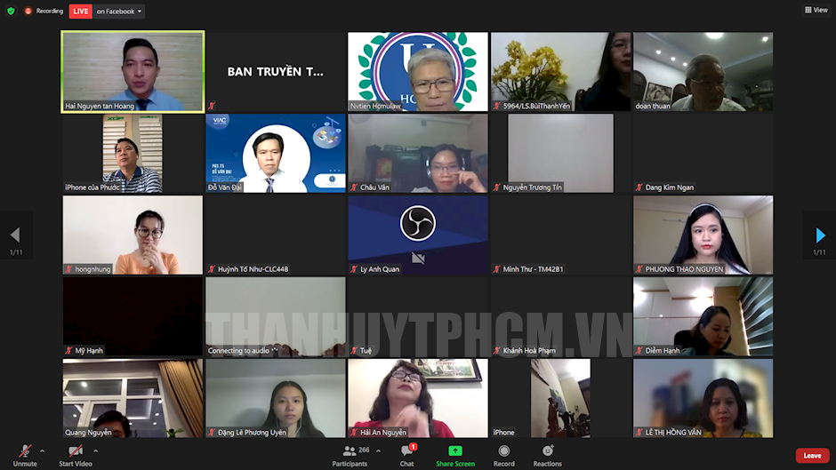 Hội thảo đầu tiên được Trường ĐH Luật TPHCM tổ chức hoàn toàn theo phương thức online qua nền tảng Zoom và livestream trên Facebook(Thanhuytphcm.vn) – Sáng 21/7, Trường Đại học (ĐH) Luật TPHCM đã tổ chức Hội thảo khoa học trực tuyến với chủ đề “Giao dịch dân sự về bất động sản”, thu hút gần 1.000 người tham gia, qua hình thức Zoom và livestream trên Facebook. Hội thảo nhằm tạo diễn đàn trao đổi, chia sẻ các nghiên cứu và thảo luận những khía cạnh pháp luật về giao dịch trong lĩnh vực bất động sản.