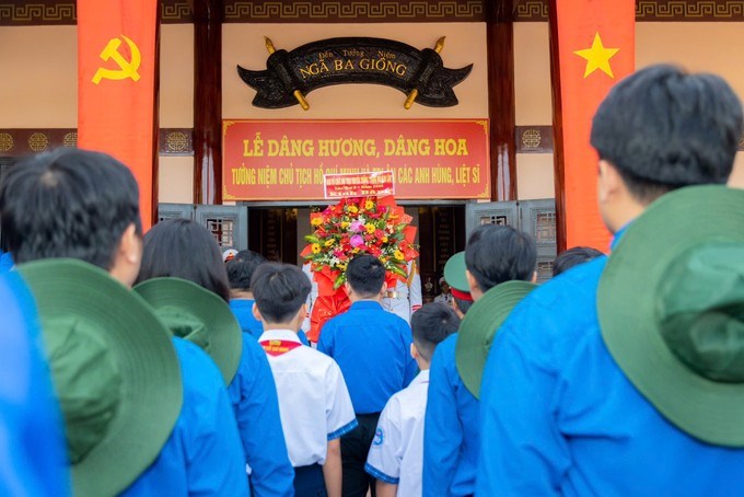 Trại sinh dâng hương, dâng hoa tưởng niệm Chủ tịch Hồ Chí Minh và các Anh hùng liệt sĩ tại Di tích Lịch sử Quốc gia Ngã Ba Giồng