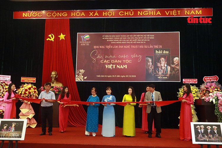 Cắt băng khai mạc triển lãm ảnh “Sắc màu cuộc sống các dân tộc Việt Nam”.Sáng 25/9, Nhà Văn hóa Phụ nữ TP Hồ Chí Minh phối hợp cùng Câu lạc bộ (CLB) Nhiếp ảnh nữ Hải Âu tổ chức triển lãm ảnh nghệ thuật “Sắc màu cuộc sống các dân tộc Việt Nam” với 100 tác phẩm của 25 tác giả là các thành viên CLB.