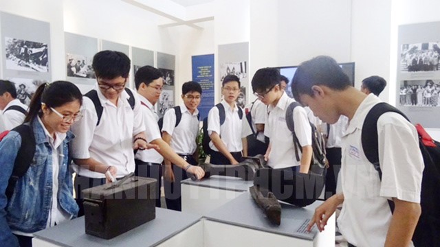 Học sinh TP tham quan trưng bày chuyên đề “50 năm Xuân Mậu Thân 1968 - Những ký ức không phai”. (Ảnh: Gia Thuận)