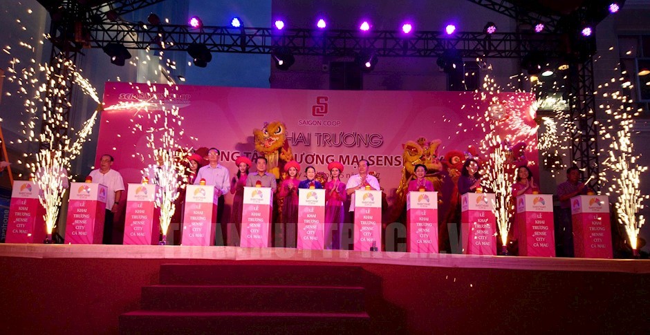 Các đại biểu thực hiện nghi thức khai trương Trung tâm thương mại Sense City Cà Mau(Thanhuytphcm.vn)
