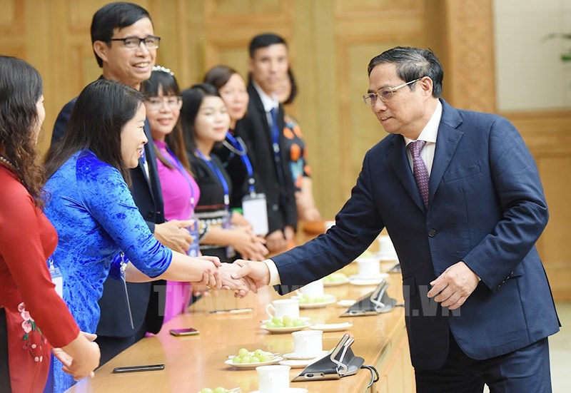 Thủ tướng Phạm Minh Chính phát biểu tại cuộc gặp các nhà giáo tiểu biểu Phát biểu tại cuộc gặp mặt, thay mặt lãnh đạo Đảng, Nhà nước, với tất cả tình cảm, sự tri ân sâu sắc, Thủ tướng Phạm Minh Chính gửi đến các thế hệ nhà giáo trên khắp mọi miền Tổ quốc lời thăm hỏi ân cần và lời chúc mừng tốt đẹp nhất. Qua nghe ý kiến của các thầy cô tại cuộc gặp mặt, Thủ tướng được hiểu, cảm thông hơn với nghề giáo. Thủ tướng đề nghị Văn phòng Chính phủ phối hợp với các bộ, ngành tổng hợp, đề xuất xử lý theo thẩm quyền, nhất là về chế độ chính sách liên quan đến đời sống tinh thần, vật chất của các thầy cô giáo.