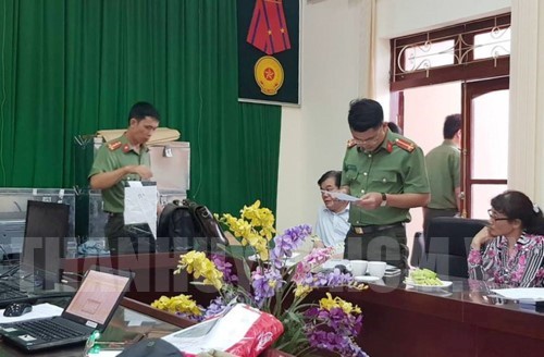 Công an tỉnh Sơn La đọc quyết định tạm giữ máy tính chấm thi của Hội đồng thi tỉnh Sơn La(Thanhuytphcm.vn) - Liên quan đến các thông tin về nghi vấn gian lận thi cử kỳ thi THPT quốc gia 2018, đến trưa 21/7, 2 tổ công tác của Bộ GD-ĐT kiểm tra xác minh điểm thi THPT tỉnh Sơn La, Lạng Sơn vẫn đang miệt mài làm việc.
