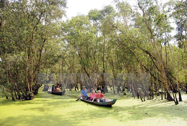 Khu du lịch sinh thái rừng tràm Trà Sư thuộc xã Van Giáo, huyện Tịnh Biên, An Giang, là khu bảo tồn thiên nhiên sinh thái tiêu biểu, độc đáo vùng Đồng bằng sông Cửu Long. (Ảnh: TTXVN)