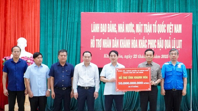 Bí thư Thành ủy TPHCM Trần Lưu Quang trao kinh phí hỗ trợ đến tỉnh Khánh Hòa.(Ảnh SGGP)Ngày 22/11, Tỉnh ủy, HĐND, UBND, Ủy ban MTTQ Việt Nam tỉnh Khánh Hòa có thư cảm ơn Đảng bộ, chính quyền và nhân dân TPHCM giúp đỡ công tác khắc phục hậu quả lũ lụt trên địa bàn tỉnh.