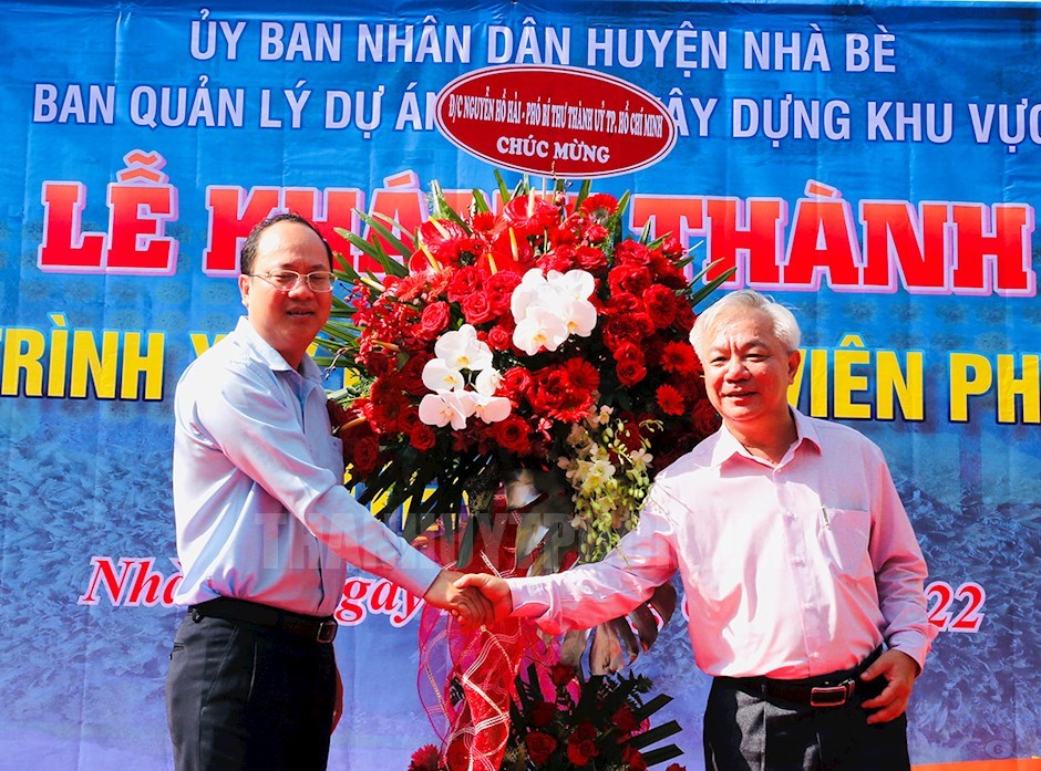 Phó Bí thư Thành ủy TPHCM Nguyễn Hồ Hải phát biểu tại lễ khánh thànhPhát biểu tại lễ khánh thành, Chủ tịch UBND huyện Nhà Bè Triệu Đỗ Hồng Phước ghi nhận và đánh giá cao Ban Quản lý dự án, các phòng ban chuyên môn đã tham mưu UBND huyện giải quyết những khó khăn, vướng mắc liên quan đến nguồn vốn, thủ tục đầu tư… để công trình được triển khai thi công thuận lợi. Đồng thời, biểu dương những nỗ lực lao động không biết mệt mỏi của đội ngũ kỹ sư, công nhân của các đơn vị tư vấn thiết kế, thi công, giám sát công trình, đã thực hiện hoàn thành công trình, đưa vào sử dụng vượt tiến độ đề ra.