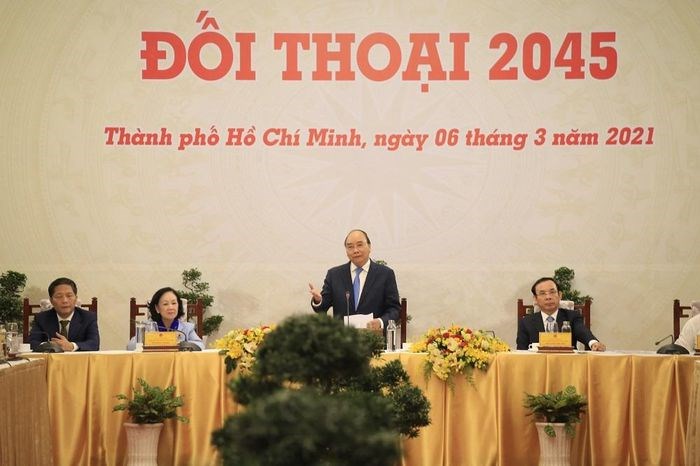 Ngày 6/3/2021, tại TPHCM, Thủ tướng Nguyễn Xuân Phúc đã chủ trì “Đối thoại 2045”, cuộc gặp gỡ để lắng nghe ý kiến của đại diện các doanh nghiệp, trí thức tiêu biểu về những chiến lược, sách lược, khát vọng thực hiện mục tiêu Việt Nam hùng cường vào năm 2045 - mốc kỷ niệm 100 năm thành lập nước. Trong cuộc đối thoại này, Thủ tướng đã kêu gọi cùng chung tay làm cho Việt Nam thành công hơn nữa, mọi trí thức, tài năng đều có cơ hội được cống hiến, phụng sự đất nước... khát vọng thực hiện mục tiêu Việt Nam hùng cường.