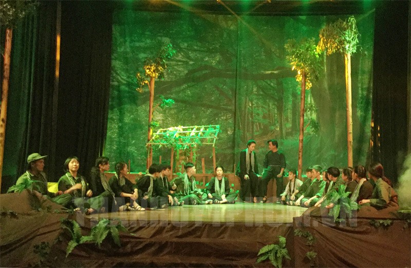 Sân khấu Trịnh Kim Chi dự Liên hoan với vở kịch đề tài cách mạng Rặng trầm bầu.