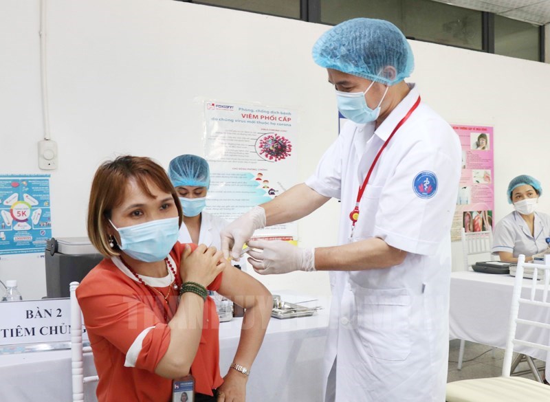 Tiêm vắc-xin phòng COVID-19 cho công nhân trong khu công nghiệp. (Ảnh: Thanhuytphcm.vn)(Thanhuytphcm.vn) - Mục tiêu nhập khẩu được 150 triệu liều vắc-xin phòng COVID-19 trong năm 2021 là rất khả thi. Thông tin này được Bộ trưởng Bộ Y tế Nguyễn Thanh Long cho biết ngày 31/5, tại buổi làm việc của Phó Thủ tướng Chính phủ Vũ Đức Đam, Trưởng ban Chỉ đạo quốc gia phòng, chống dịch COVID-19 với Bộ y tế về tình hình, tiến độ nhập khẩu vắc-xin phòng COVID-19.