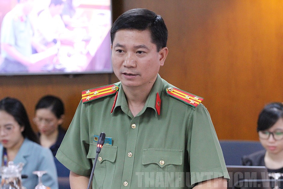 Thượng tá Lê Mạnh Hà thông tin tại buổi họp báo(Thanhuytphcm.vn) - Tại buổi họp báo diễn ra chiều 9/11, Thượng tá Lê Mạnh Hà, Phó trưởng Phòng tham mưu Công an TP đã thông tin về biện pháp bảo vệ thông tin cá nhân và xử lý việc mua bán thông tin cá nhân của người dân.
